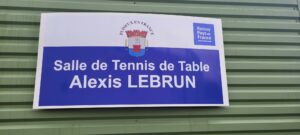 Dénomination de la salle de tennis de table de Puiseux en France: « Salle de tennis de table Alexis Lebrun » en présence du champion